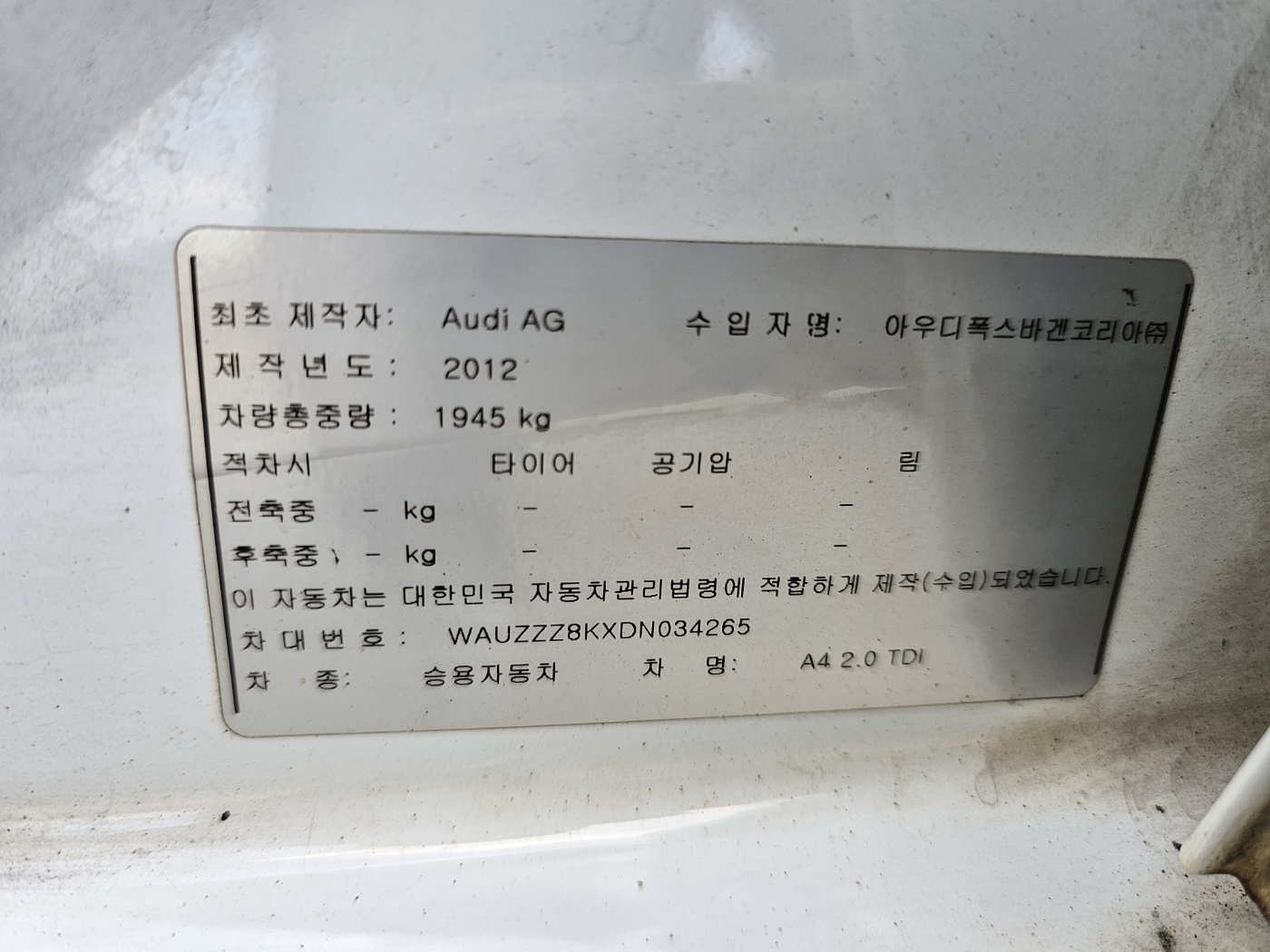 [Reserved]2013 Audi New A4 2.0 TDI (S/N: 034265)