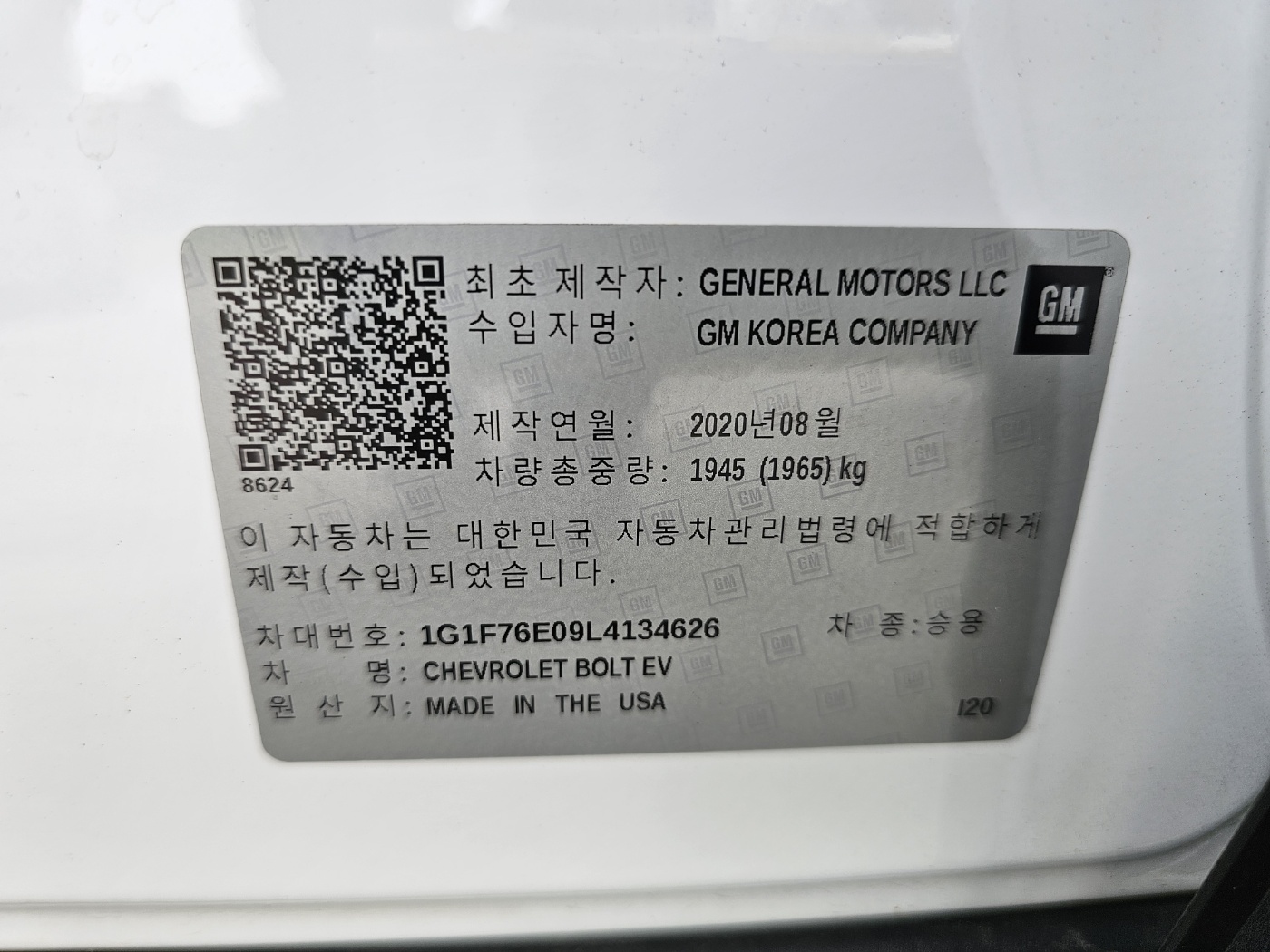 2020 Bolt EV Premier (S/N: 134626)